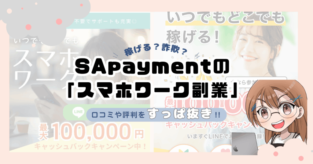 さて、今回は読者さんからの相談が多いSApayment合同会社の「スマホワーク副業」についてすっぱ抜いていくわよ! いただいた読者さんからのお悩みはというと・・・ スマホワーク副業を始めてみましたが全く稼げず、個人情報を入力してしまいました・・・。... -